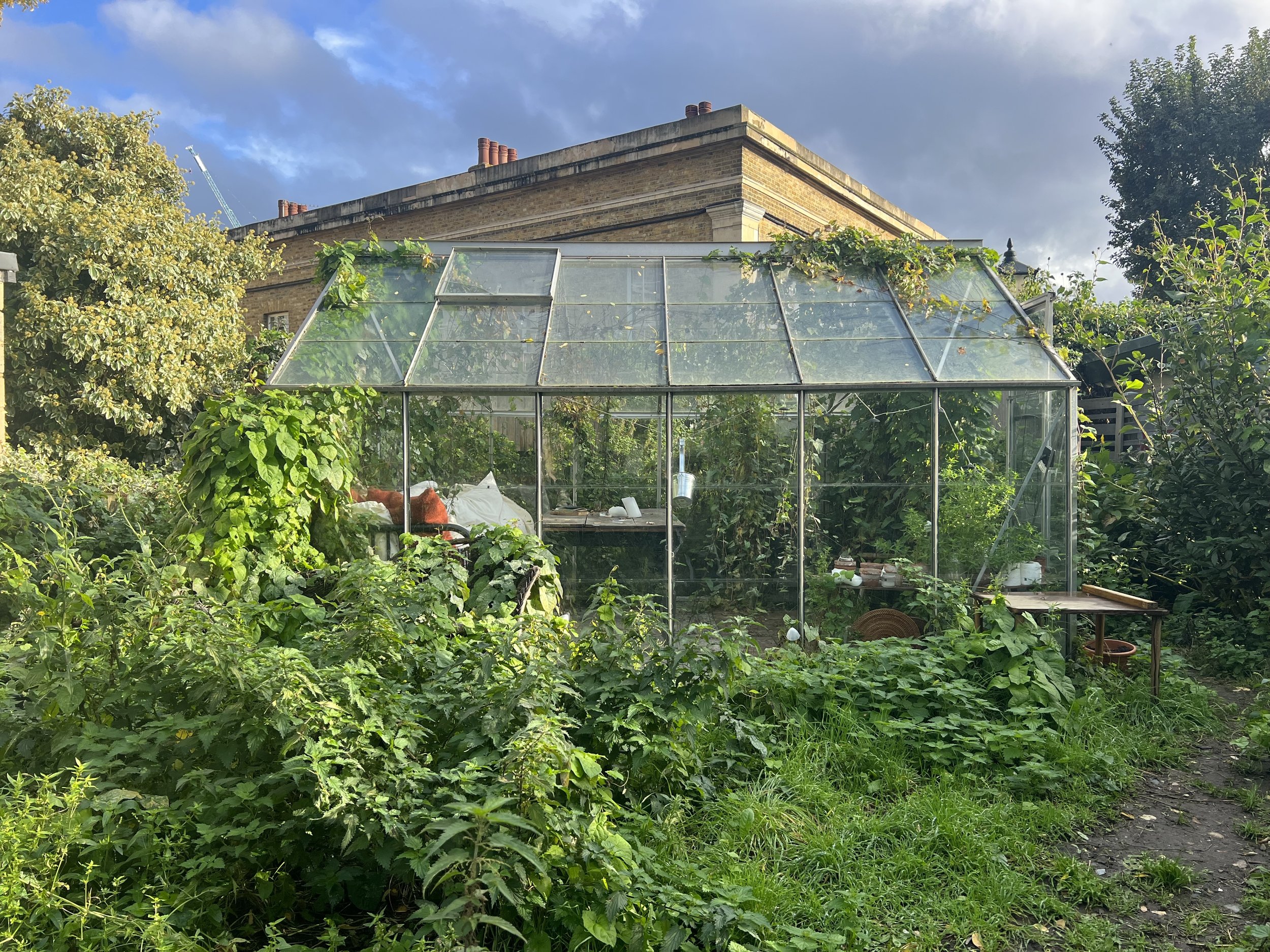 Please note: since this photo was taken, the greenhouse has been gently tamed, and curtains have been added for privacy.